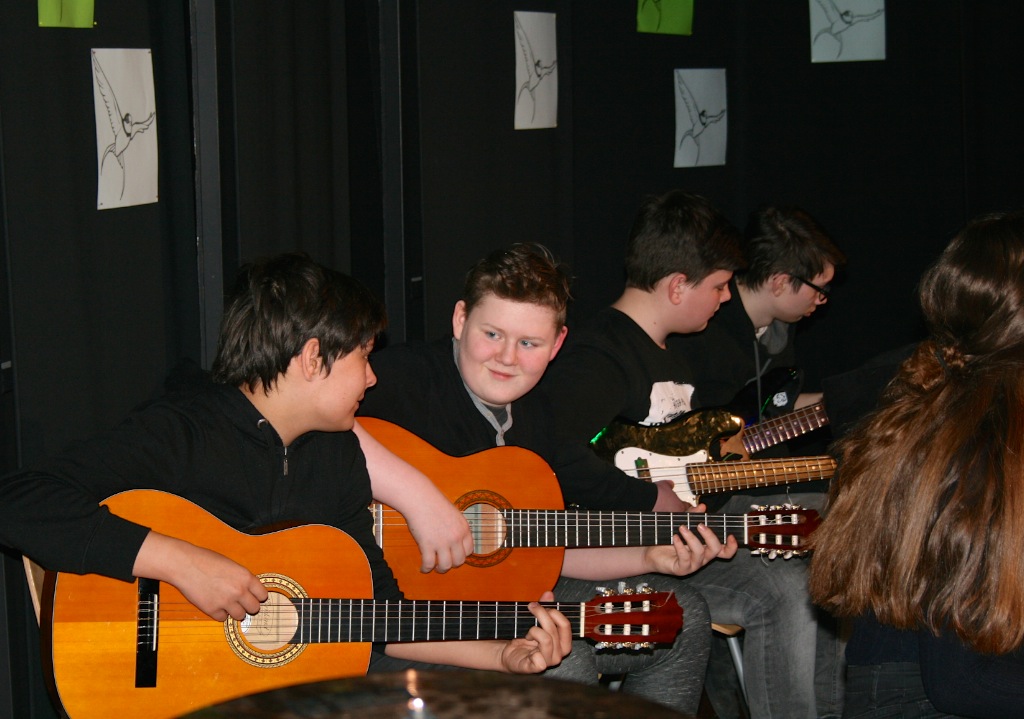 Auf den Schulkonzerten der Klassen 5-8 mit dem Schulchor und der Schulband bieten die Klassen unter der Anleitung von Frau Kölbel und Herrn Höpner von Kleinspielstücken über Pop bis Rock flotte und teils selbst arrangierte Stücke zum Fußwippen und Mitklatschen.